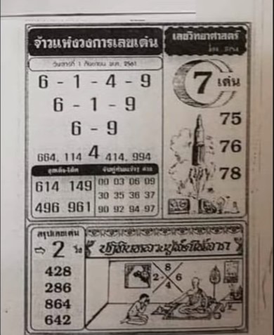 Thai Lottery First Paper For 01-09-2018